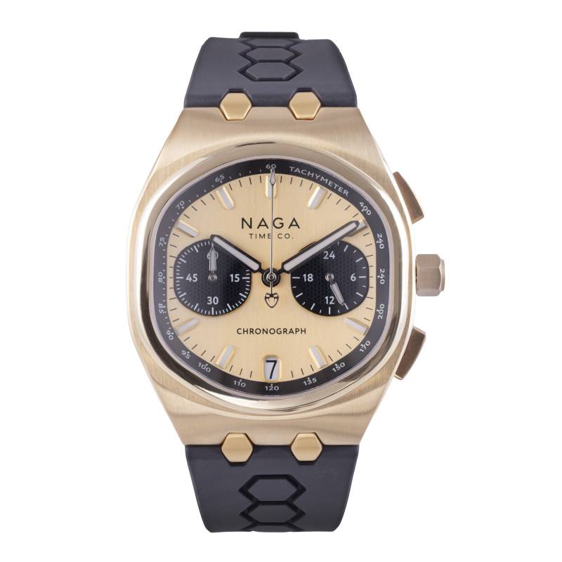 Inspired by the legendary Mille Miglia — the most iconic road race in automotive history — this model captures the charm of classic grand touring. The satin gold dial with black panda sub-dials recalls the refined instrumentation of historic automobiles, where precision met craftsmanship.